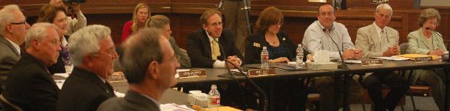 | Right to left: Council Members Donna Rice, Daryle Klassen, Hugh McKean, Cat McEwen, Kent Solt, Joan Shaffer, Carol Johnson with City Attorney John Duval, Mayor Pro Tem Larry Heckel, Mayor Cecil Gutierrez and City Manager Bill Cahill. |