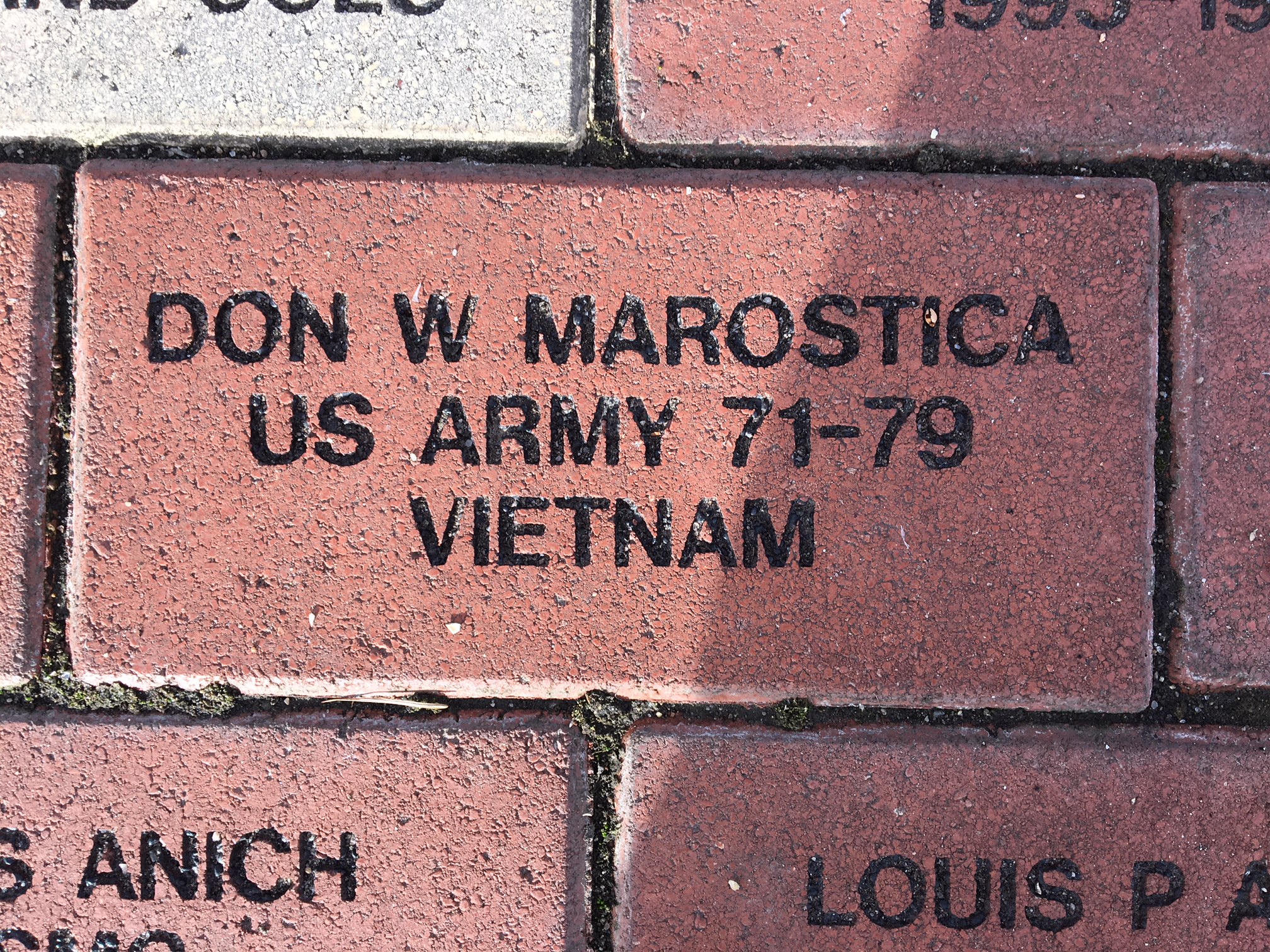 Loveland's veteran memorial park, Harold Dwayne Webster, is named for the first Lovelander to die in WWII during the Japanese attack on Pearl Harbor. Steps away from that monument bearing the names of those Lovelanders who gave their lives in the service of this country is a brick stating, Donald W. Marostica, US Army 71-79, Vietnam.