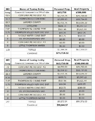 Below is an analysis of Best Buy in Centerra personal property taxes actuals for 2015 and real property taxes (assuming a building value of $2 million) and how they will change when the metro district mill levy is increased to repay the growing public debt (click to enlarge) |