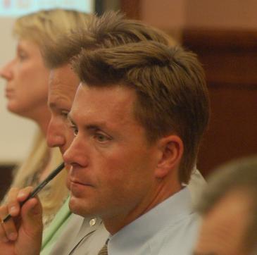 Developer Chad McWhinney watches the April 21, 2009 Loveland City Council meeting.