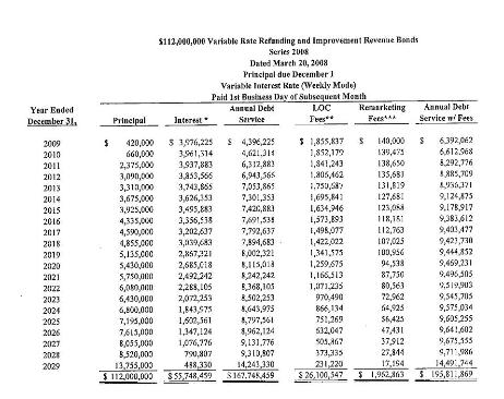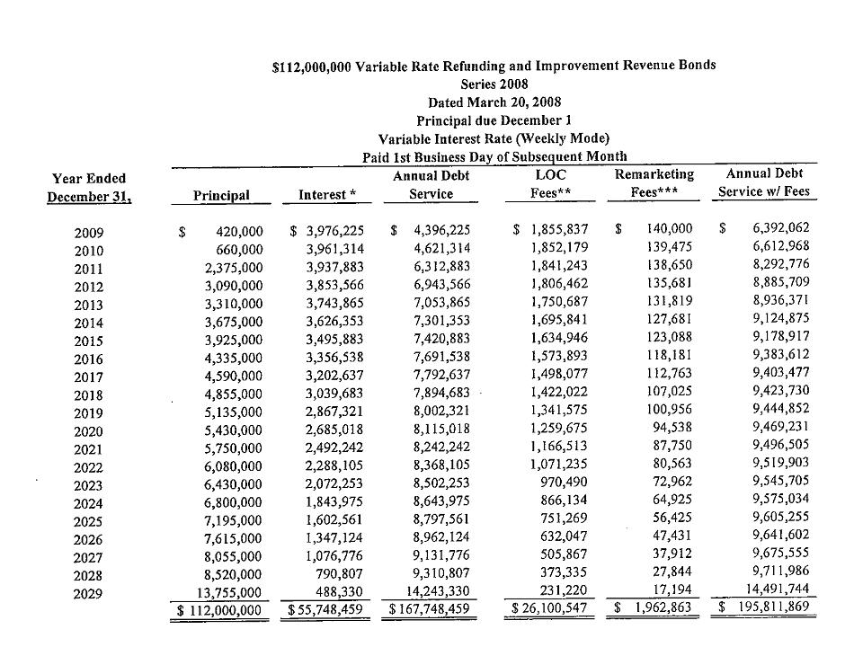 | Debt Service - $195,811,869 In Escalating Payments Due (2009 - 2029) |