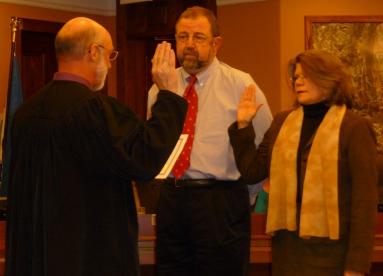 | Loveland Councilwoman Joan Shaffer, right, being sworn-in alongside her then husband Mark Shaffer. |