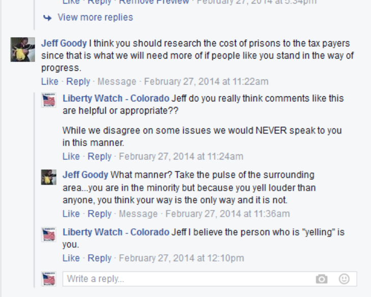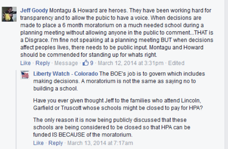 Goody is a regular on Facebook and posts political comments regularly with his friend Loveland Councilman Ralph Trenary. In one recent post, Goody instructed fellow Trenary and teacher union backed school board candidates to contact real estate brokers whose signs are located on property to determine whether or not the listing agent approves. In fact, property lines are not always obvious and even commercial real estate brokers don't necessarily know when the property owner grants permission for political signs to be posted.