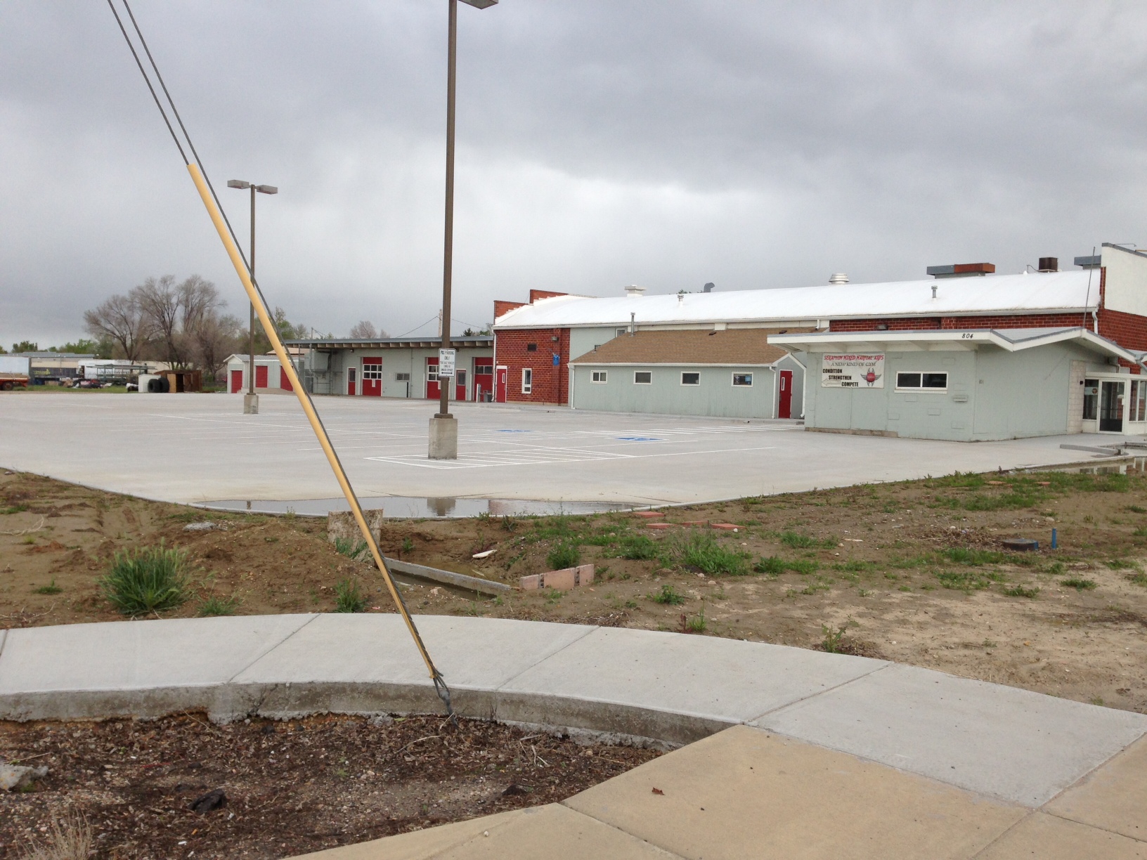 | The parking area of the former Ferguson High School campus along with a shed (far left) that would have remained following demolition for the Loveland Youth Gardners along with one acre (far left) for their projects as negotiated with Natural Grocer had Loveland not "partnered" with Sprouts thus causing Natural Grocers to pull their privately funded investment for a new building and store out of Loveland. |