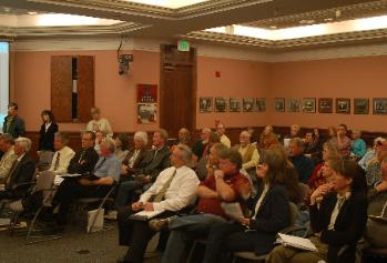 | Standing room only inside the council chambers |