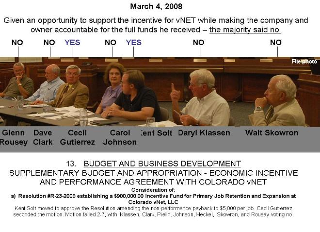 friends to run for Loveland City Council who continued defending the "investment" before vNet was out of